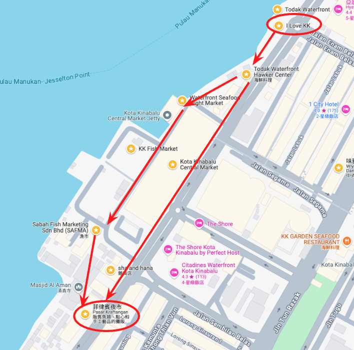 差不多一天可以把亞庇市區比較熱鬧的地方逛完,不過建議可以分不同天逛,因為想吃的東西太多了,胃的容量有限,用走的腳也很累。