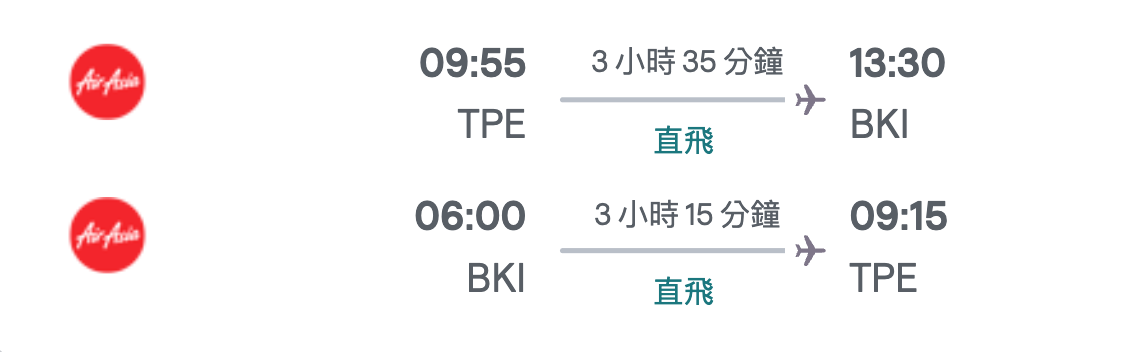 1. 台灣 → 亞庇(Kota Kinabalu, KK)