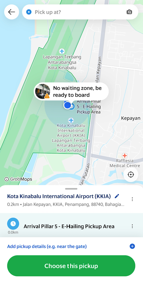 ▲ Grab 的操作介面,和 Uber 差不多,有停靠點可以選擇。